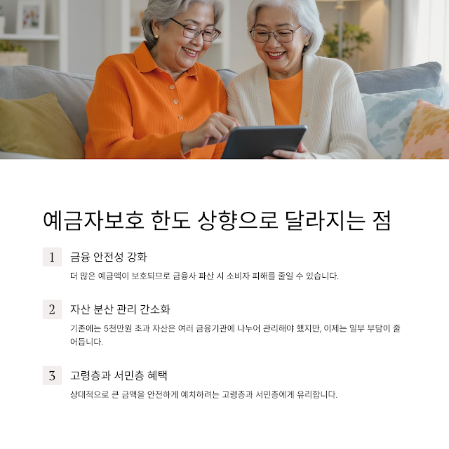 - 자산 분산 관리 간소화: 기존에는 5천만원 초과 자산은 여러 금융기관에 나누어 관리해야 했지만, 이제는 일부 부담이 줄어듭니다.